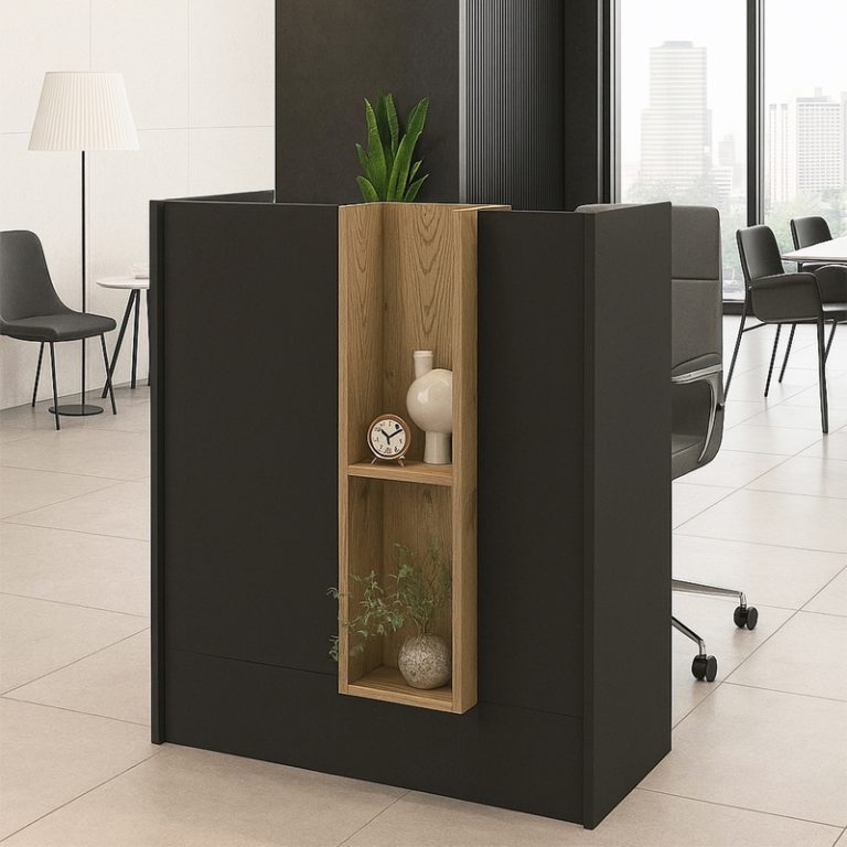 Γραφείο reception Lotus pakoworld σε χρώμα φυσικό – ανθρακί 140x70x110εκ